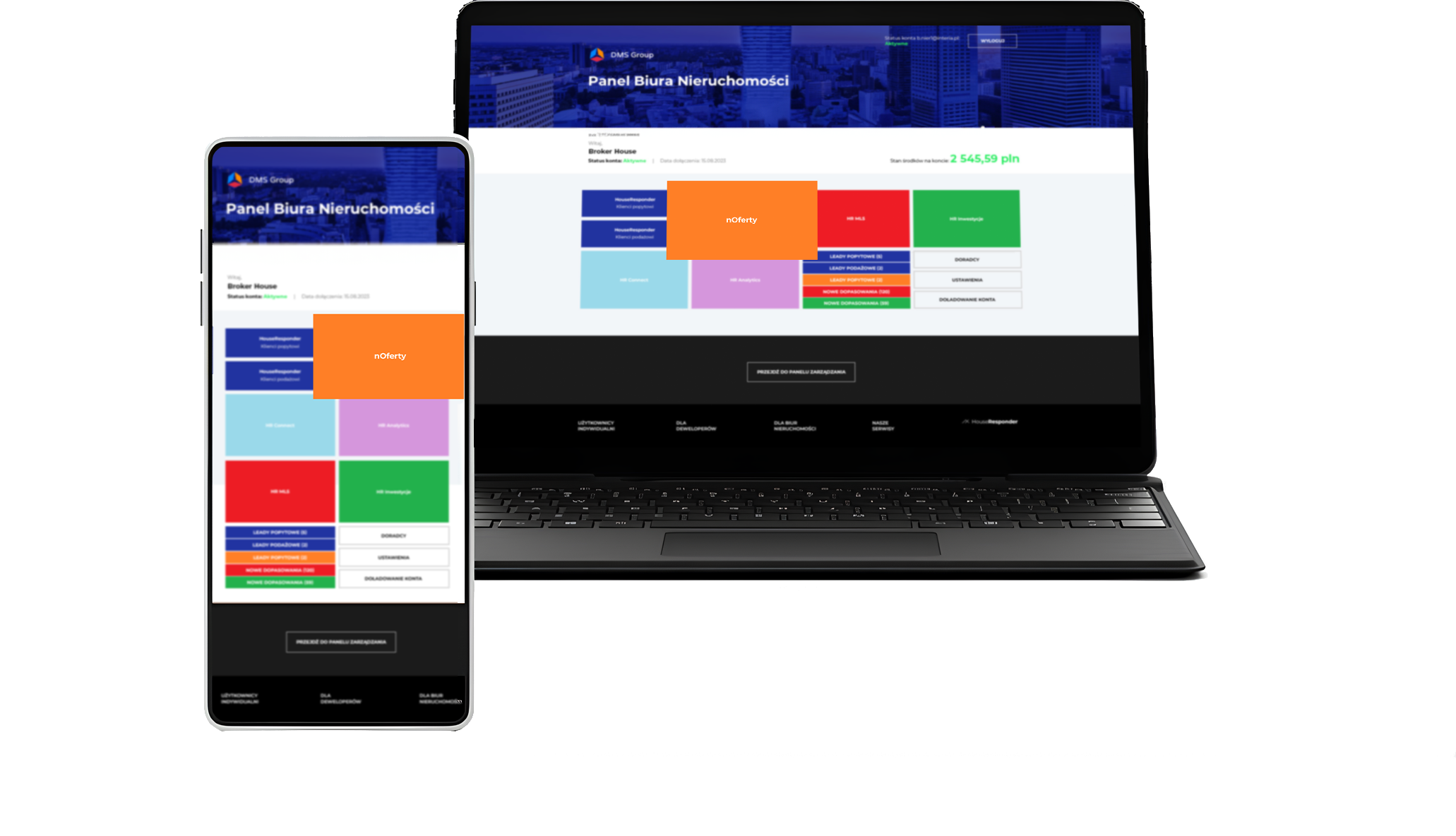 Jeden panel biura nieruchomości umożliwia dostęp do multifunkcjonalnej platformy rynku nieruchomości.