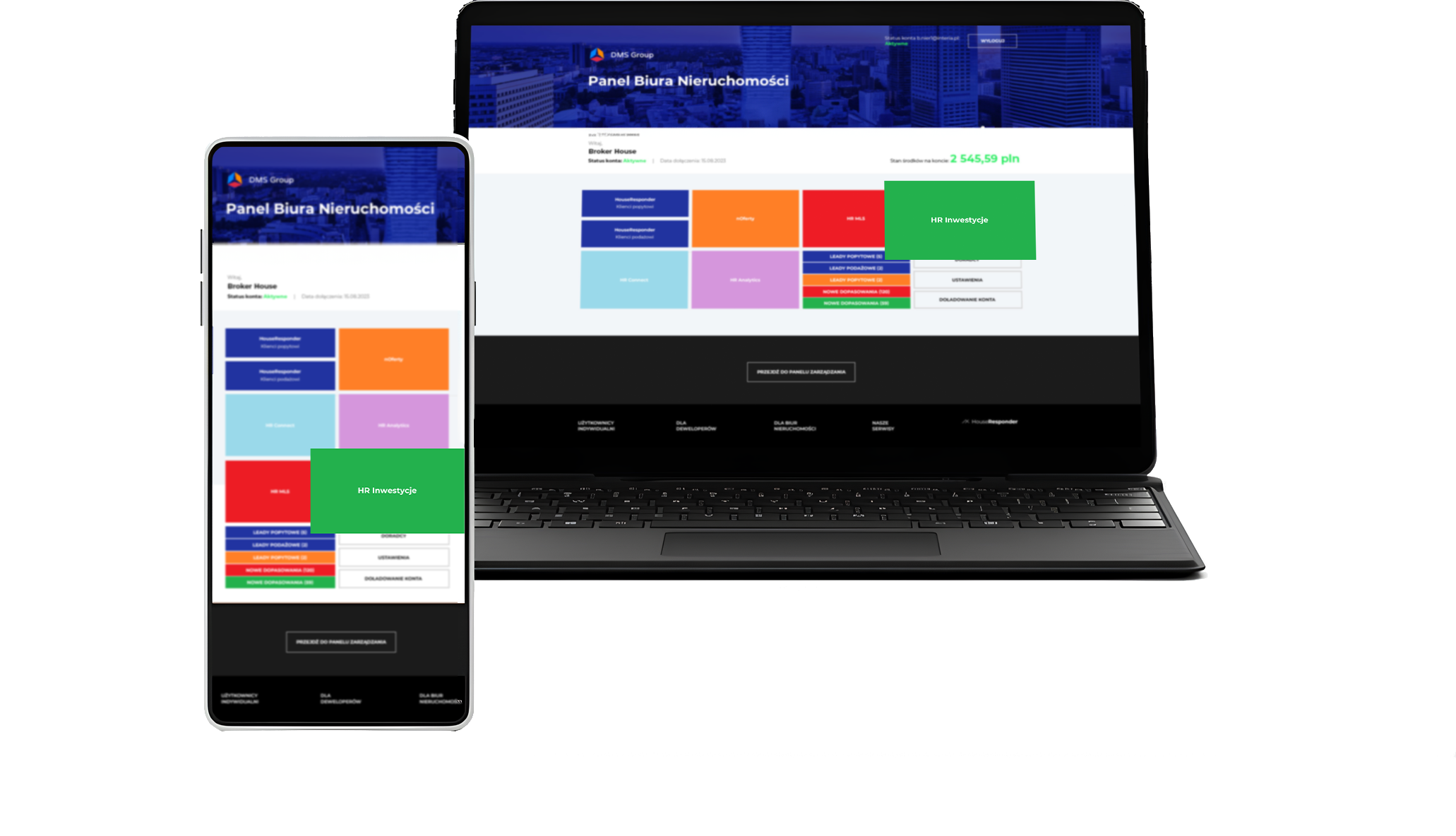 HR INWESTYCJE umożliwia agentom nieruchomości wysyłanie do swoich klientów ofert mieszkań i domów udostępnionych do sprzedaży przez deweloperów.