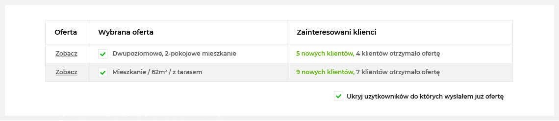 Agenci nieruchomości mogą wysyłać oferty współpracy właścicielom nieruchomości, którzy wcześniej wyrażą chęć podjęcia współpracy z agentem nieruchomości przy sprzedaży mieszkania, domu lub działki.